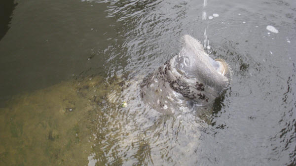 Brunswick Marina. The manatee can't get enough fresh water from the hose |